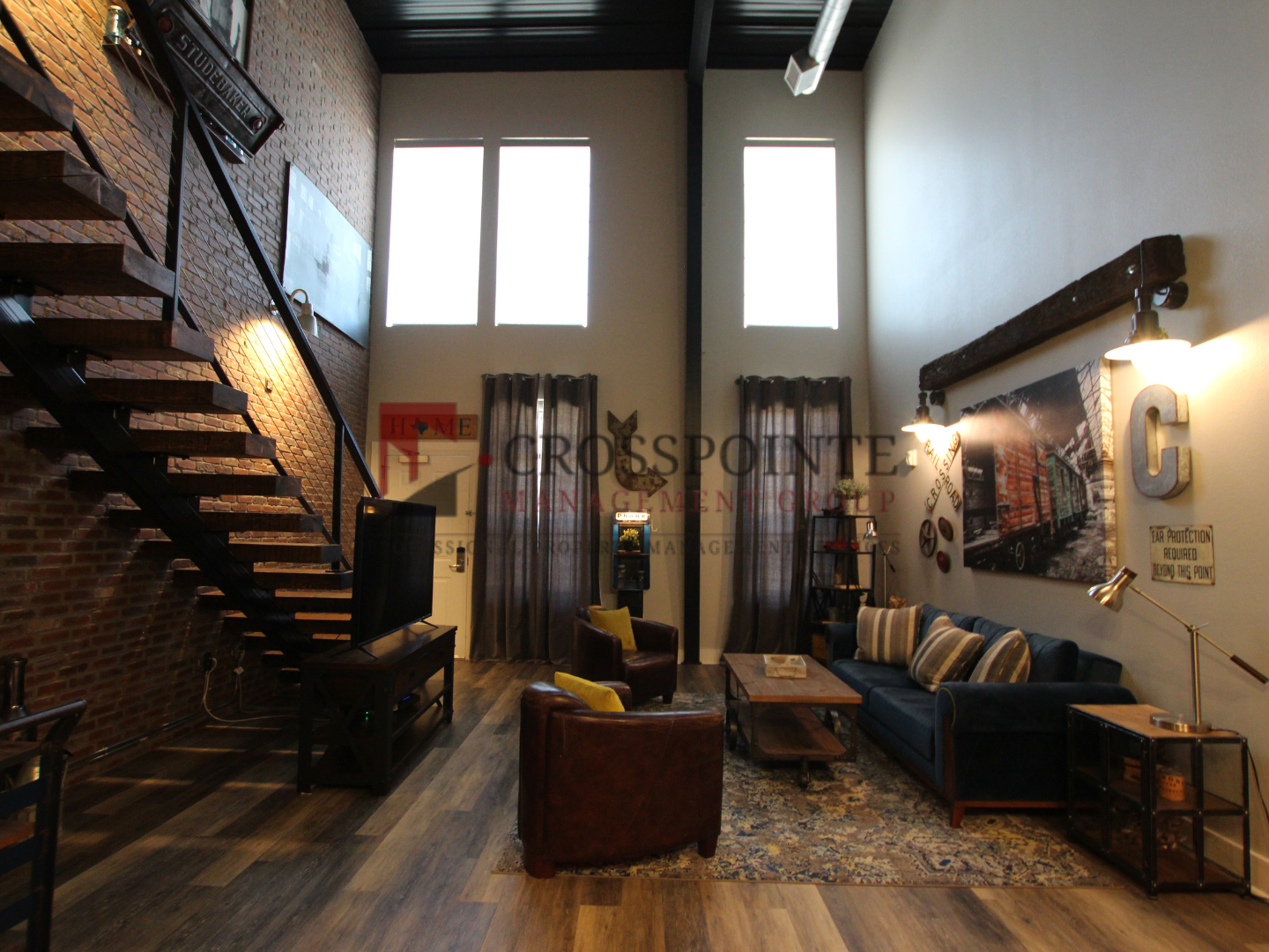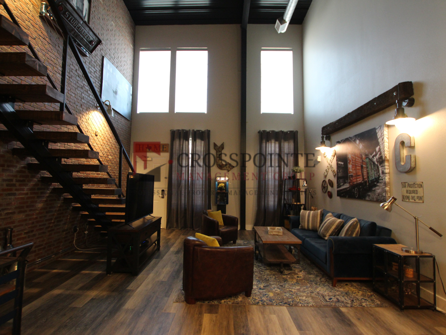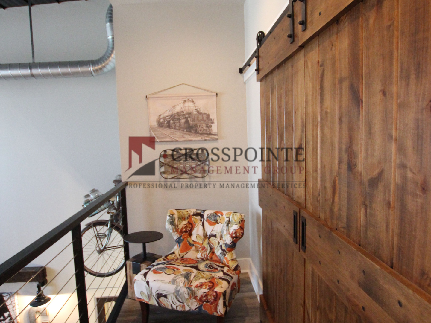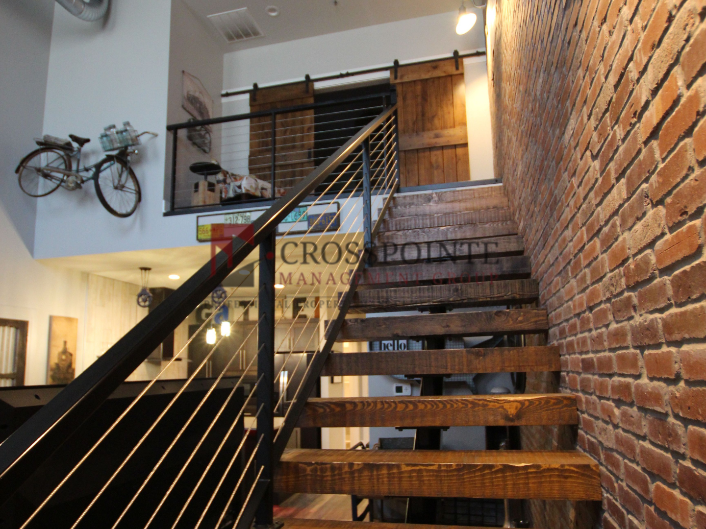 The Cannery Lofts offer bedrooms with wood-style plank flooring and stylish sliding barn doors. The stairs feature hardwood steps and exterior doors are equipped with a digital locking system, providing protection and peace of mind. Elevate your living experience by choosing The Cannery Lofts!