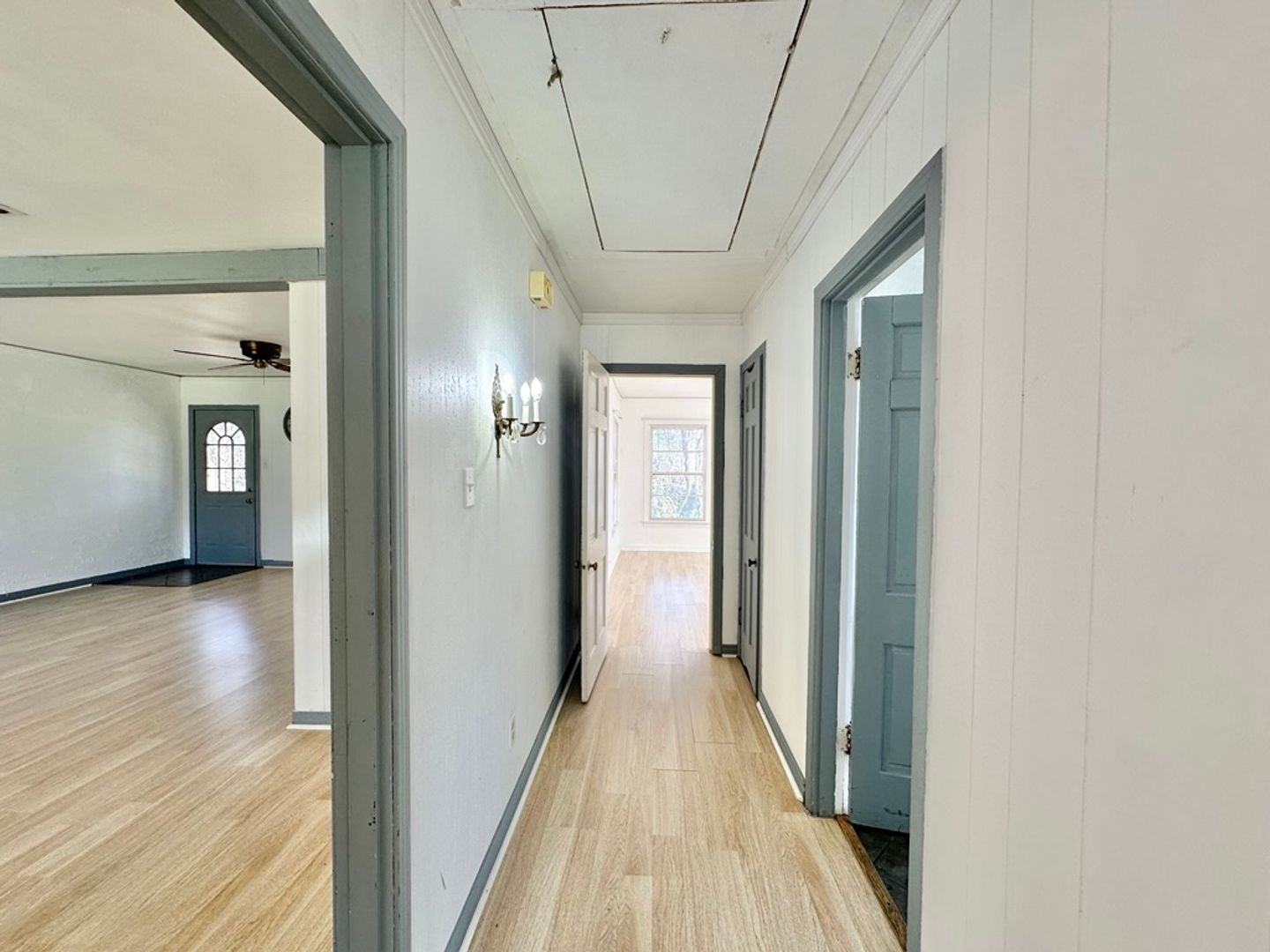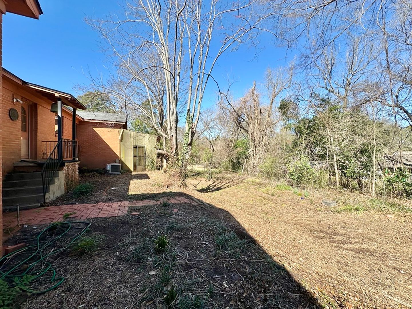 The home boasts a spacious backyard, easily accessible through the bedroom on the left side of the home and the living room, offering plenty of space for outdoor activities. The opposite side of the home features two additional generous-sized bedrooms and a full bathroom, ensuring privacy and comfort for everyone.